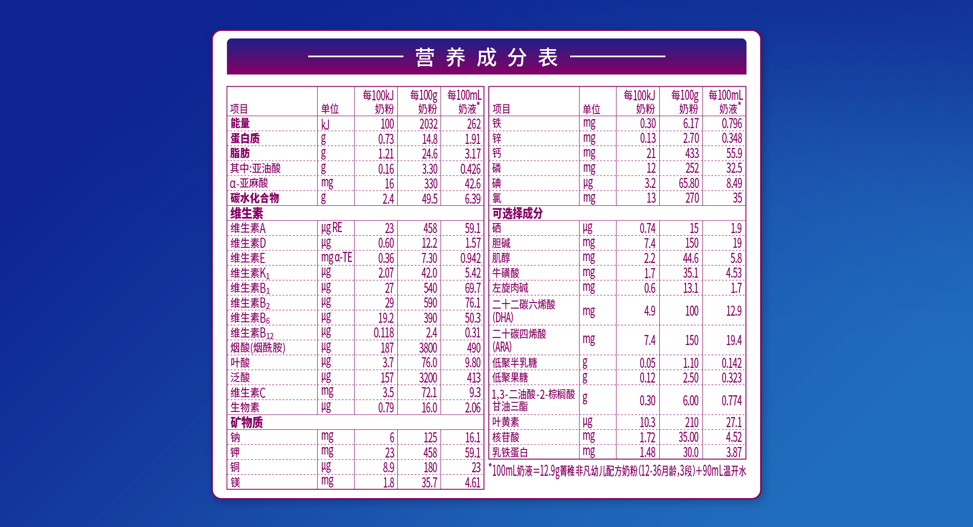 營養(yǎng)成分表